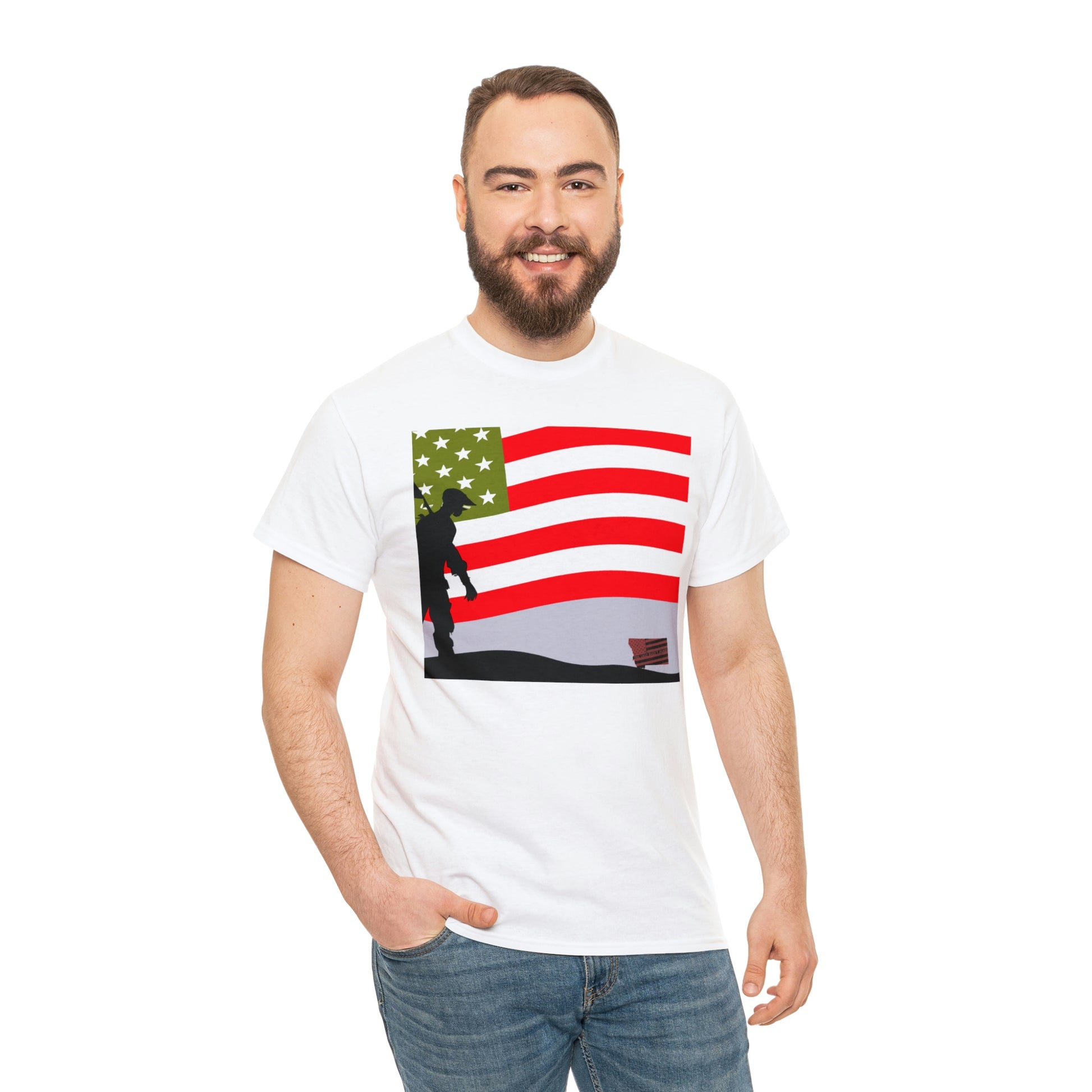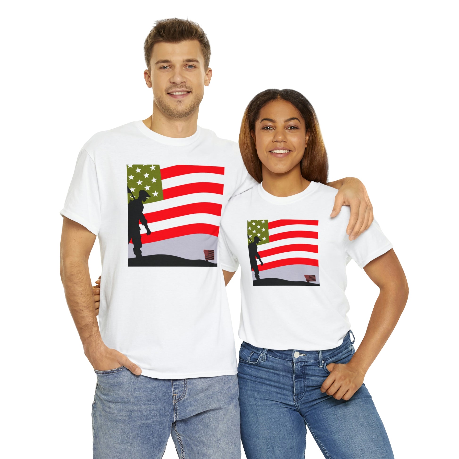 This women's razor back tank top is perfect to show off your patriotism for America! Featuring an American flag in bright colors and a silhouette of a soldier with his weapon, you can proudly wear this tank top to show your appreciation! Pair this tank with skinny jeans and ankle boots for a relaxed and stylish look. The razor back design will help keep you cool and comfortable even on the warmest days of the summer. Add this tank top to your patriotic wardrobe now! #MilitaryProud #PatriotismUSA #AmericanFlag #WomensFashion #RazorBackTankTop #SummerStyle #SupportOurSoldiers #AmericanWarriors #AmericaProud #4thOfJulyReady