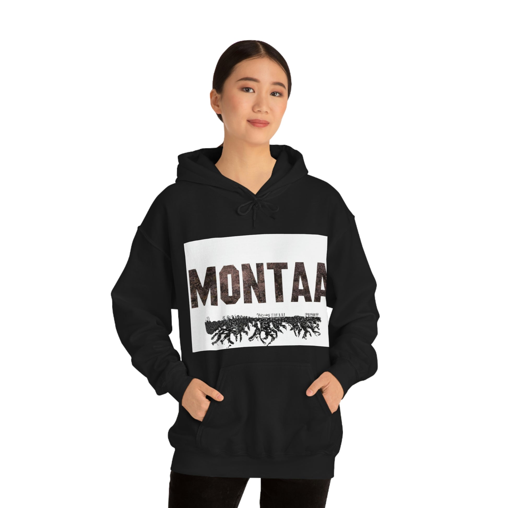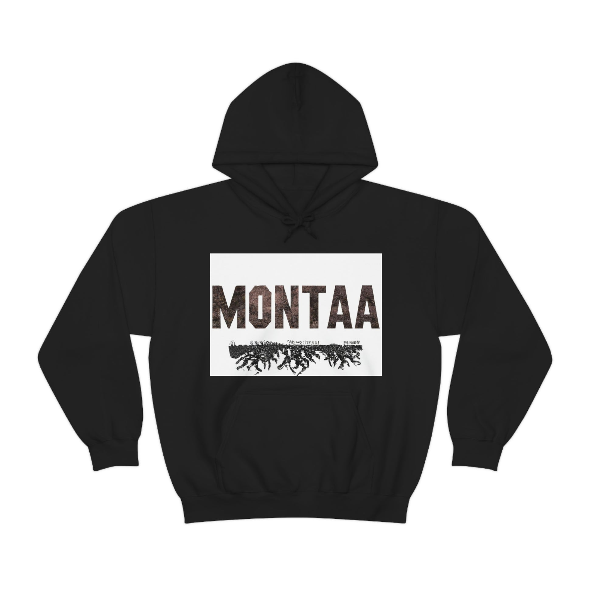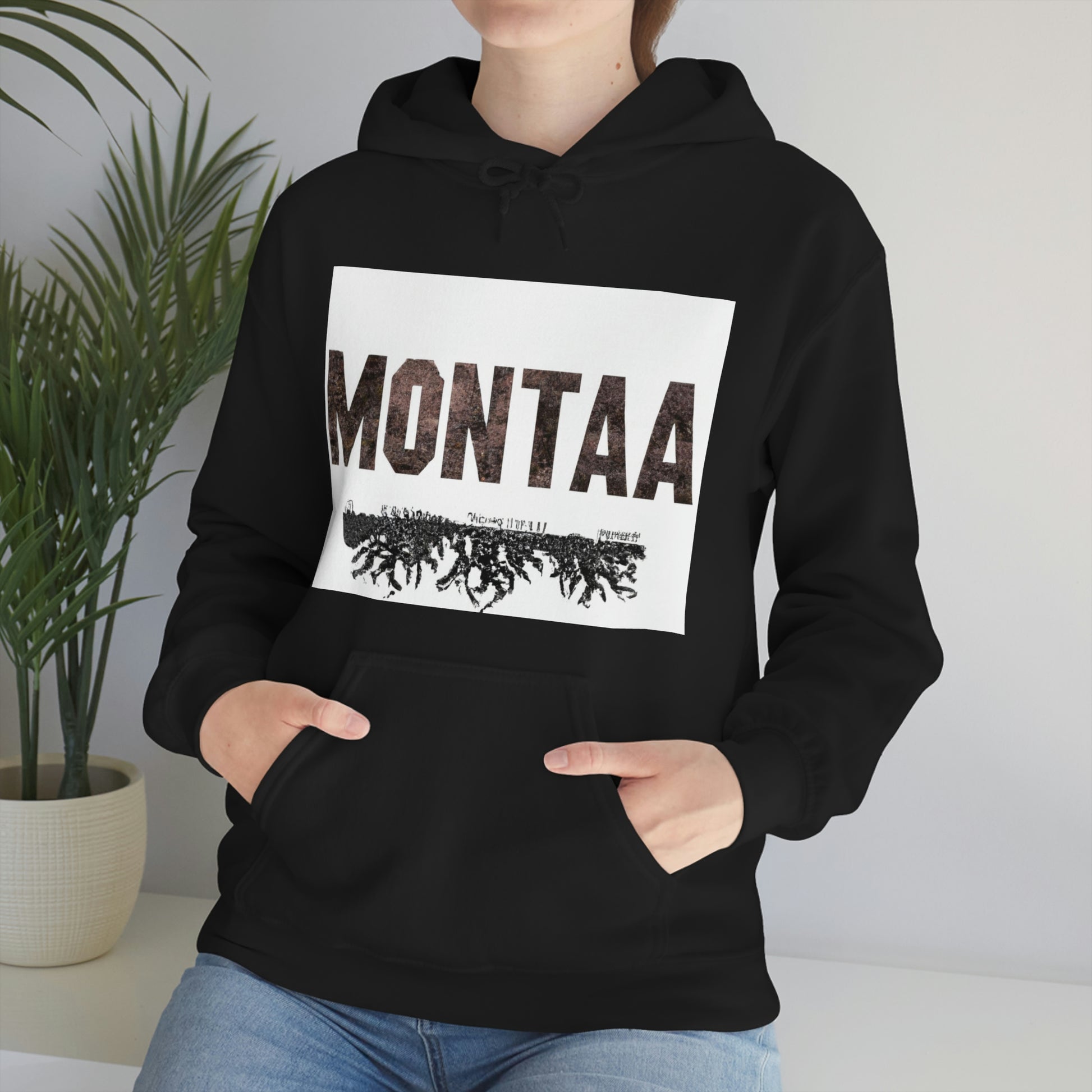 This Montana Roots Hoodie features a unique and creative design that captures the deep connection many feel to the state. Reinterpreted tree roots form the outline of Montana, with a simple yet impactful font. Ideal to wear during cooler days, this hoodie makes a powerful statement, making everyone take notice of your sense of style and your Montana pride. #MontanaRoots #StatePride #Hoodie #UniqueDesign #FashionStatement #GiftIdea #CoolerDays #ExpressYourself #RootedinMontana #deepConnection #StatementFashion
