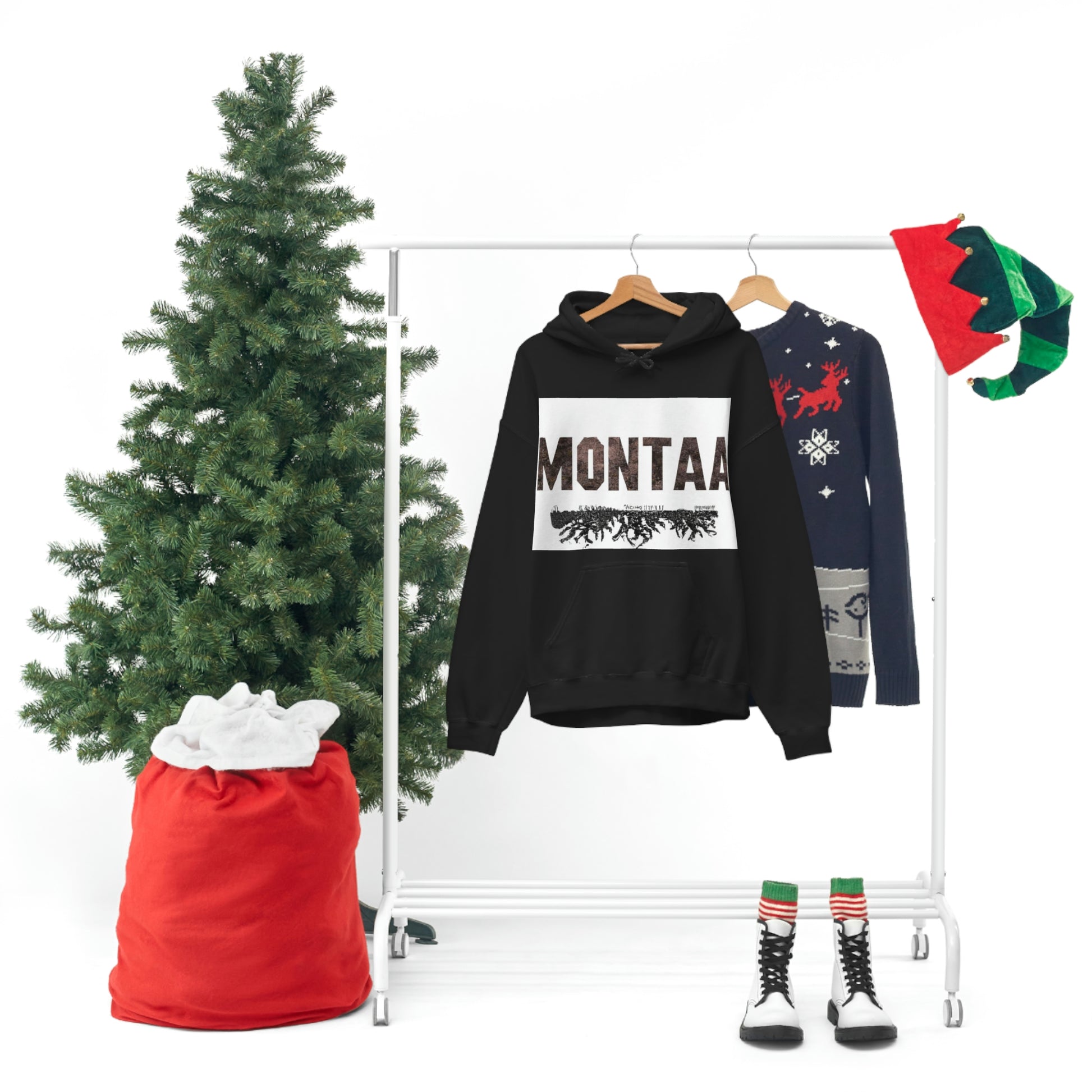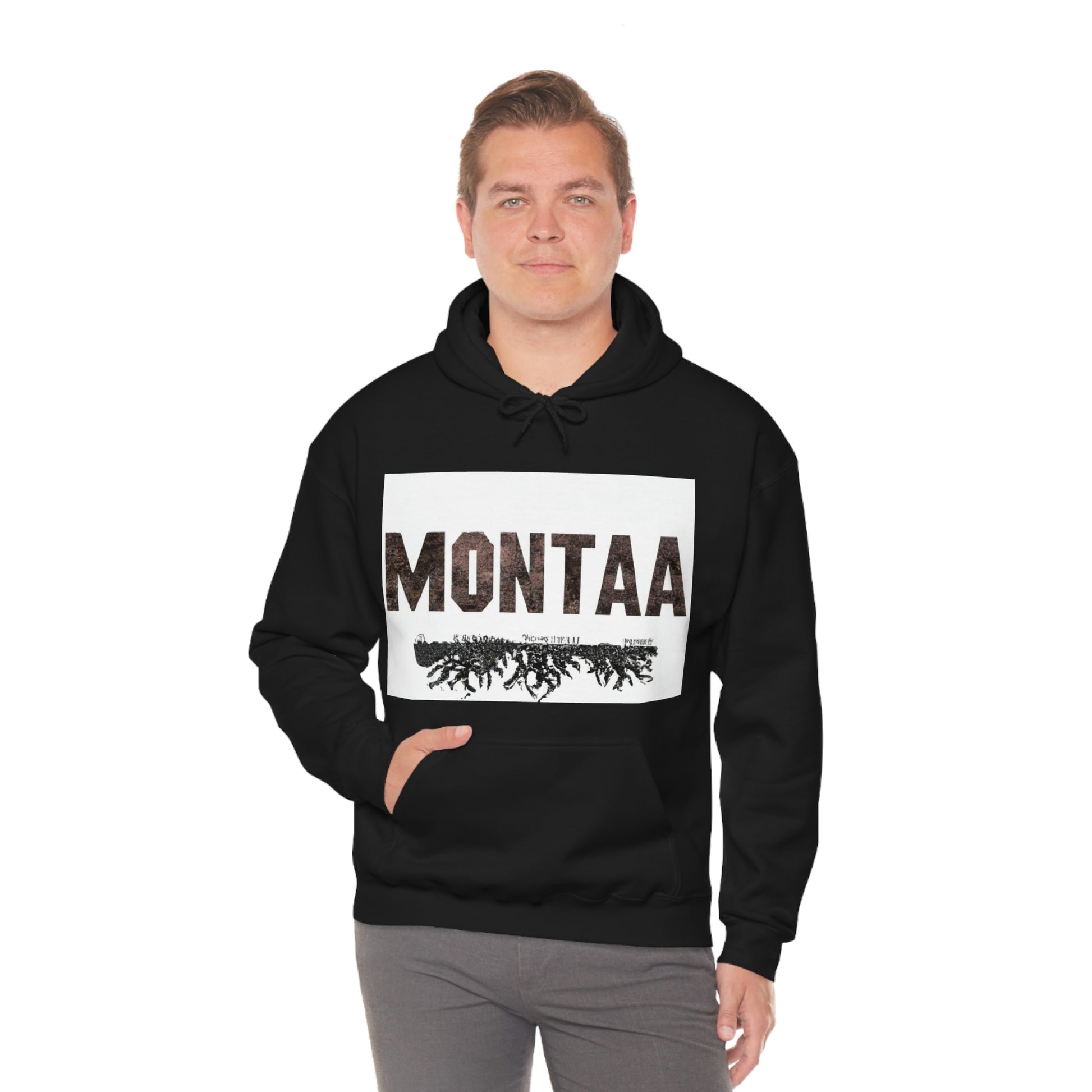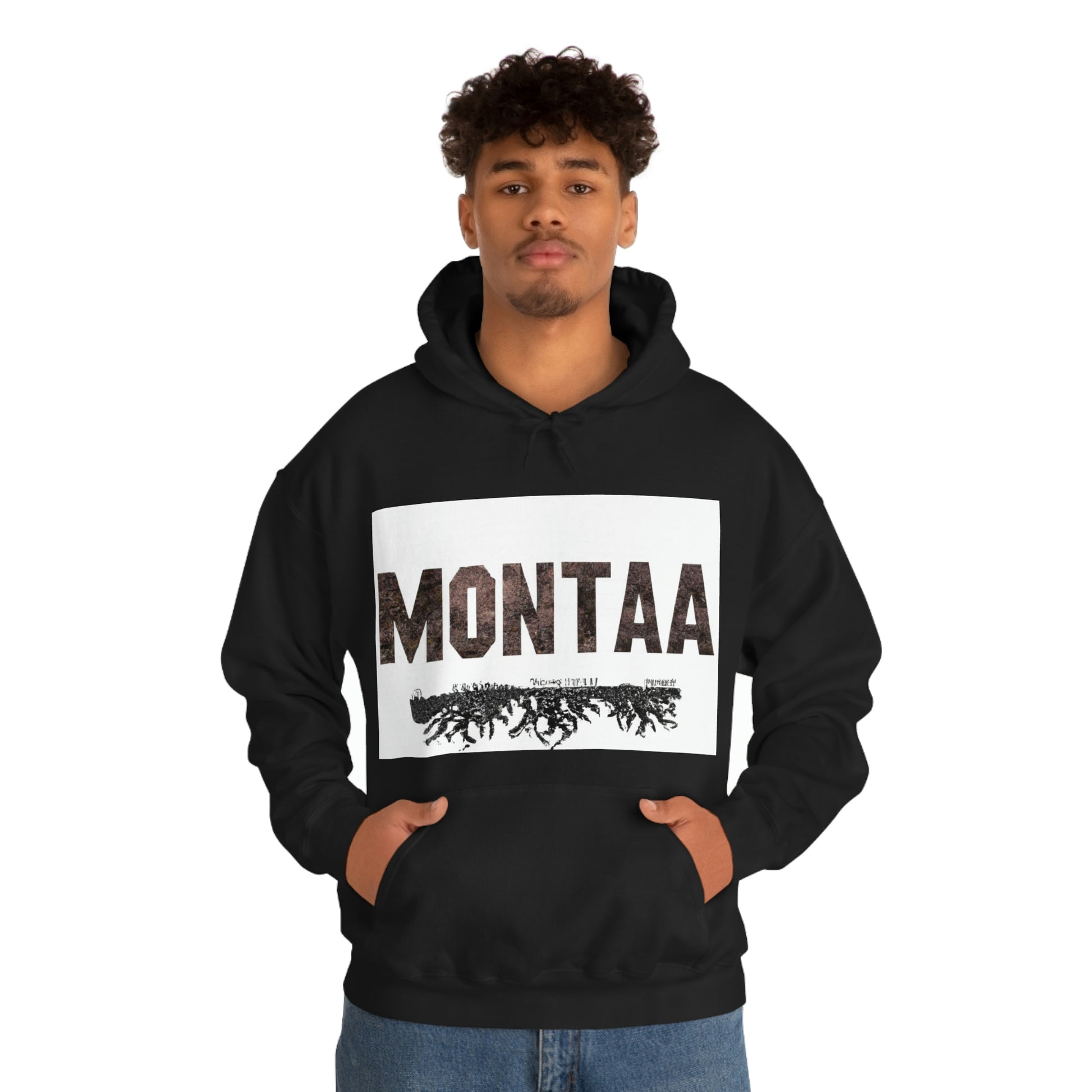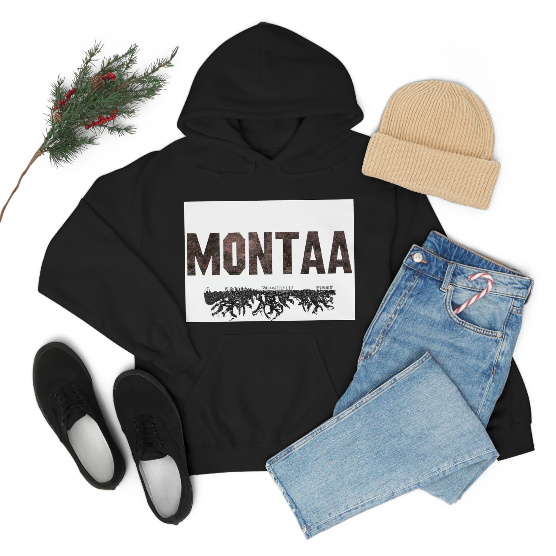 This Montana Roots Hoodie features a unique and creative design that captures the deep connection many feel to the state. Reinterpreted tree roots form the outline of Montana, with a simple yet impactful font. Ideal to wear during cooler days, this hoodie makes a powerful statement, making everyone take notice of your sense of style and your Montana pride. #MontanaRoots #StatePride #Hoodie #UniqueDesign #FashionStatement #GiftIdea #CoolerDays #ExpressYourself #RootedinMontana #deepConnection #StatementFashion